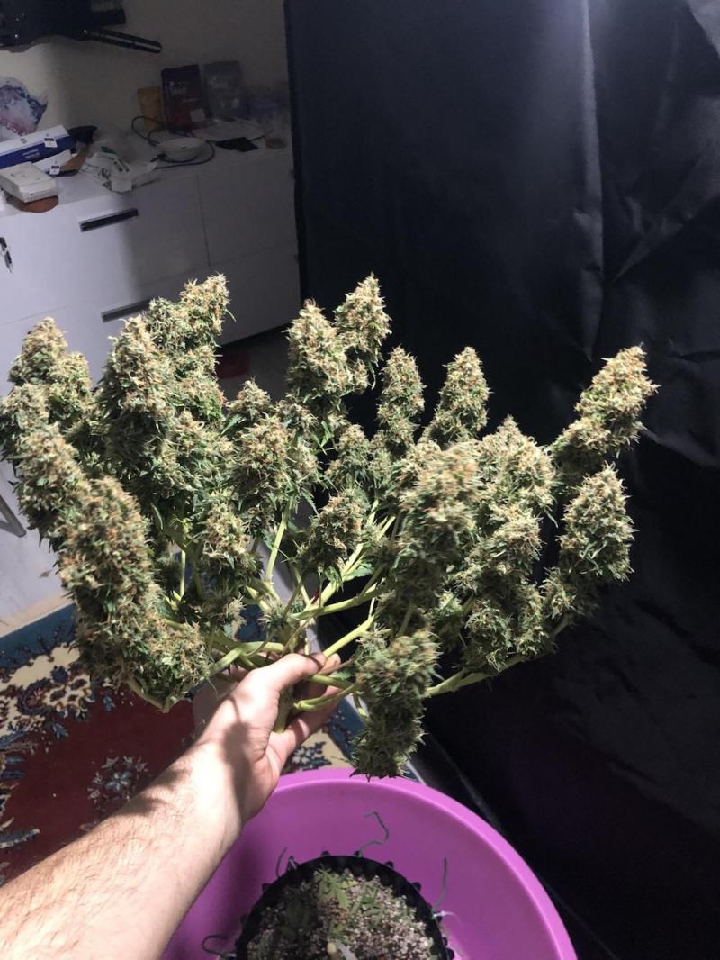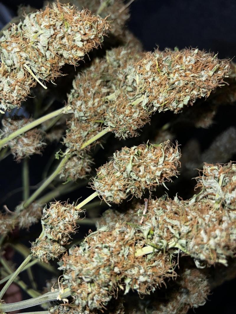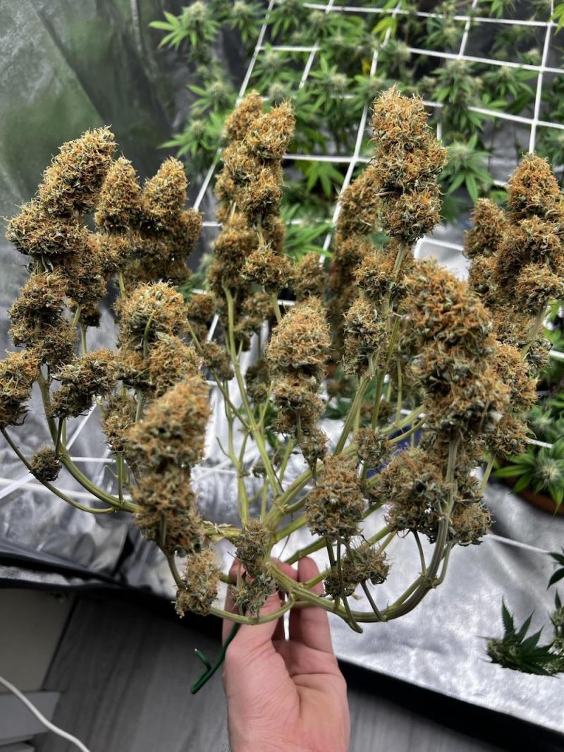 Растение имеет средний размер, при этом может вырастать до 1,5 метров в высоту, особенно в условиях аутдора. Оно демонстрирует крепкую и хорошо развитую структуру с обильным количеством боковых ветвей, что способствует формированию густых и крепких цветов. Время цветения составляет от 55 до 70 дней при искусственном освещении, а при выращивании на улице этот период составляет от 50 до 70 дней. Урожайность высокая, что делает его хорошим выбором для коммерческих целей, как в помещении, так и на улице.