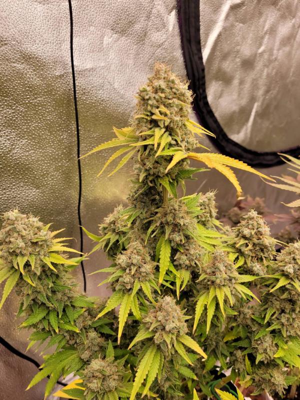 Растение имеет среднюю высоту с крепкой и раскидистой структурой, образует плотные смолистые шишки. Подходит для применения техник LST и SCROG для лучшей вентиляции и управления ростом. Цветение длится 9–10 недель, урожайность в помещении высокая, а на улице можно получить ещё больший результат в благоприятном климате. Сорт отличается хорошей устойчивостью и неприхотлив в уходе.