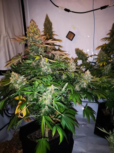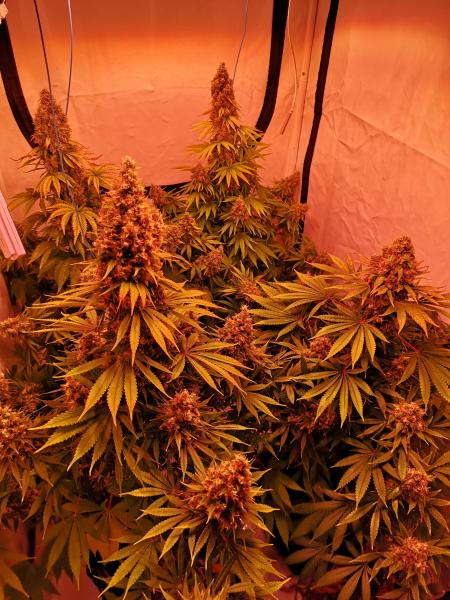 Растения средней высоты с сильным центральным колой и развитой боковой структурой. Цветение продолжается около 9 недель, при этом формируются плотные смолистые шишки с выраженным ароматом. Урожайность высокая как в индоре, так и на улице, сорт устойчив к плесени и легко адаптируется к SCROG. Уход несложный, растение стабильно и предсказуемо развивается.